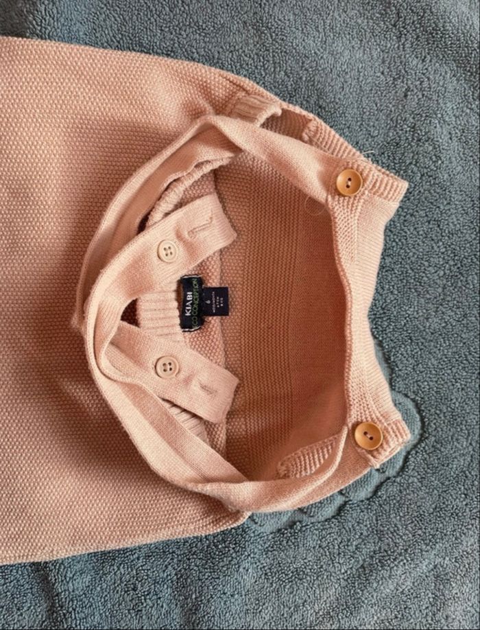 Salopette beige qui s’ouvre entre les jambes avec des pressions mixte Jamais mis juste laver car trop d’affaires en 6 mois Taille 6 mois Marque Kiabi