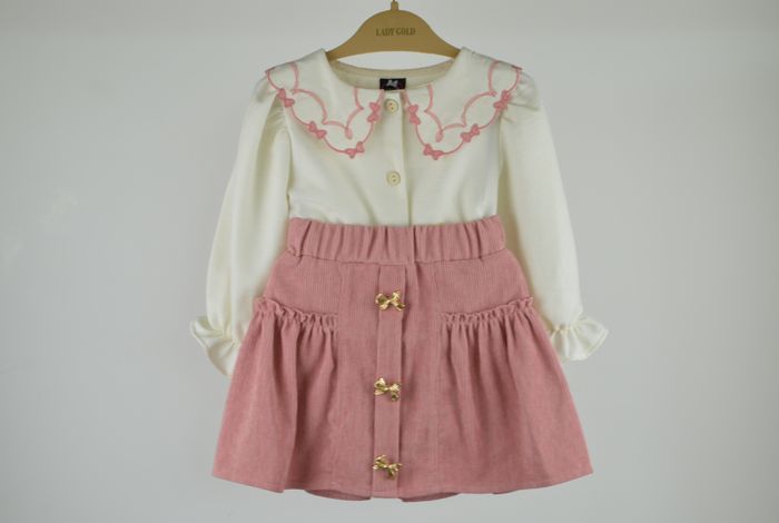 Ensemble Fille 2 Ans Jupe Rose & Chemisier à Nœud – Tenue Adorable Bébé Fille