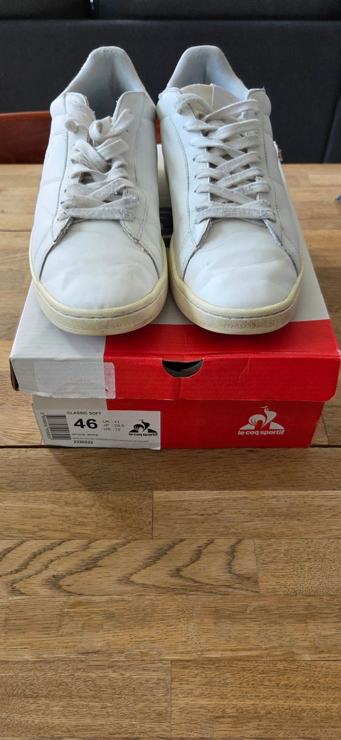 Chaussure Le Coq Sportif homme modèle Classic soft optical White Taille 46 /Uk 11 /US 12 Semelle impeccable La semelle de propreté a été changée