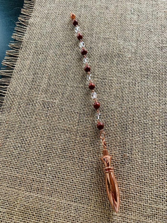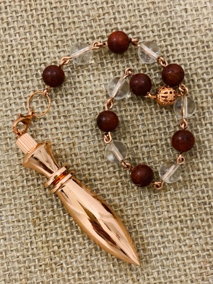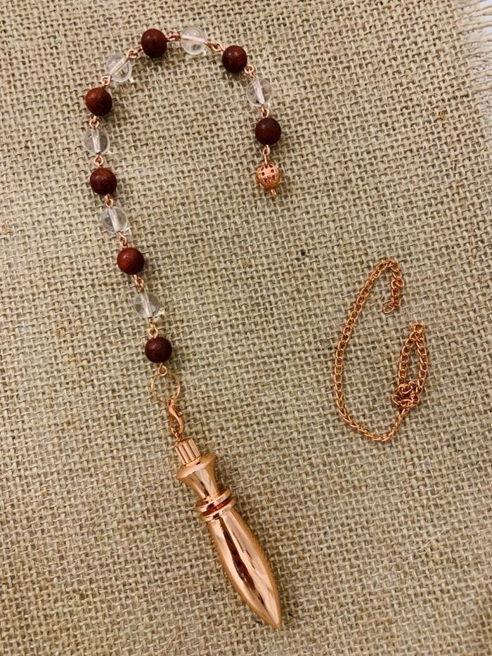 Neuf pendule avec chaine. Perles de 6 mm en cristal de roche et perle de 6 mm bois de palissandre.