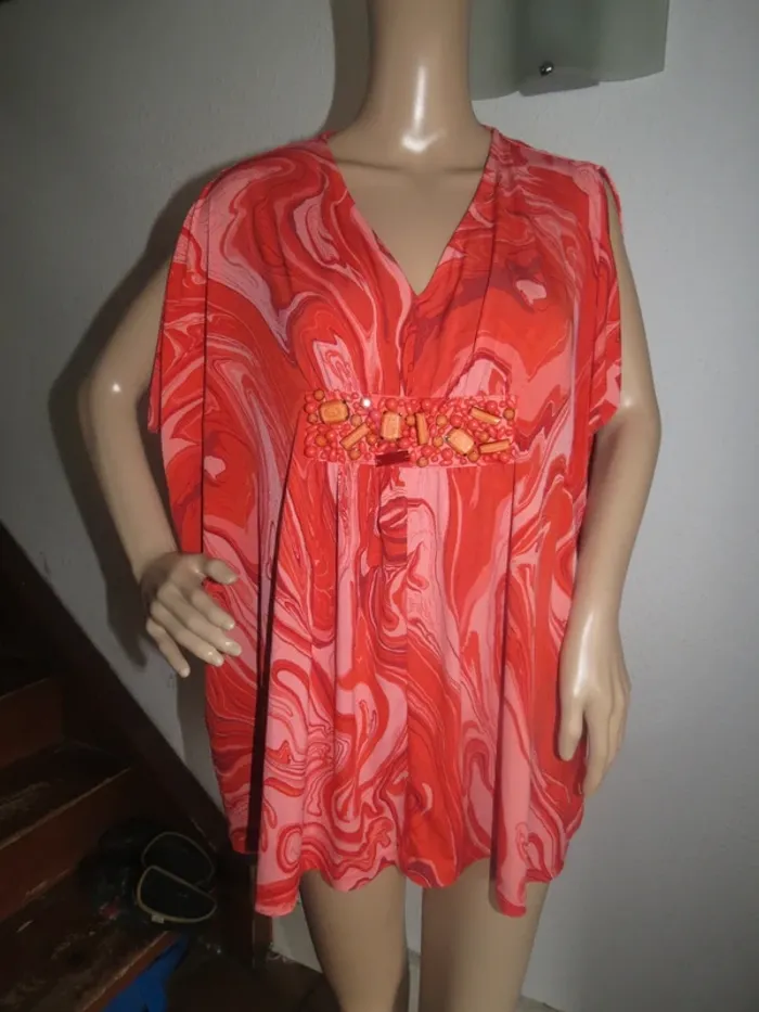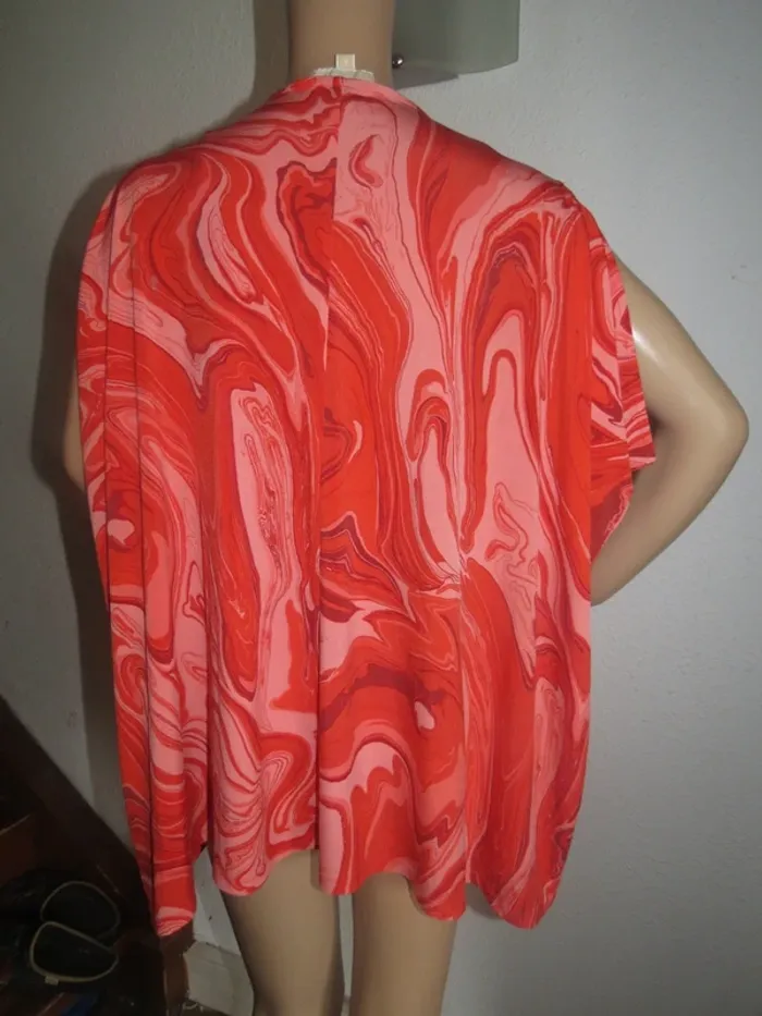 Je vends ce t-shirt femme de couleur rouge aux motifs abstraits fluides. Une pièce confortable et originale, parfaite pour un look décontracté au quotidien. - Type de produit : T-shirt - Univers : Femme - Taille : S (36) - Couleur : Rouge / Bordeaux - Caractéristiques : Col V, Manches courtes, Ceinture ornementale dorée N'hésitez pas à me contacter pour plus d'informations ou de photos