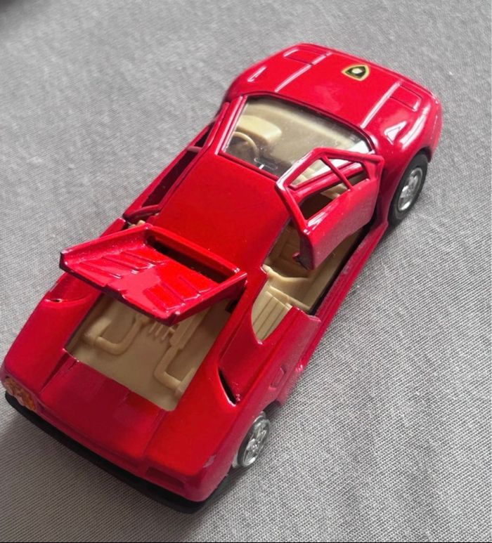Je vends un voiture de collection de la marque « Welly »: Lamborghini Diablo - A l'échelle 1/43 - Numéro de série: 9044 - Matière: 100% Métal - Année: 1999 - Couleur: Rouge !! Il manque la pneu caoutchouc arrière droit En très bon état 1€