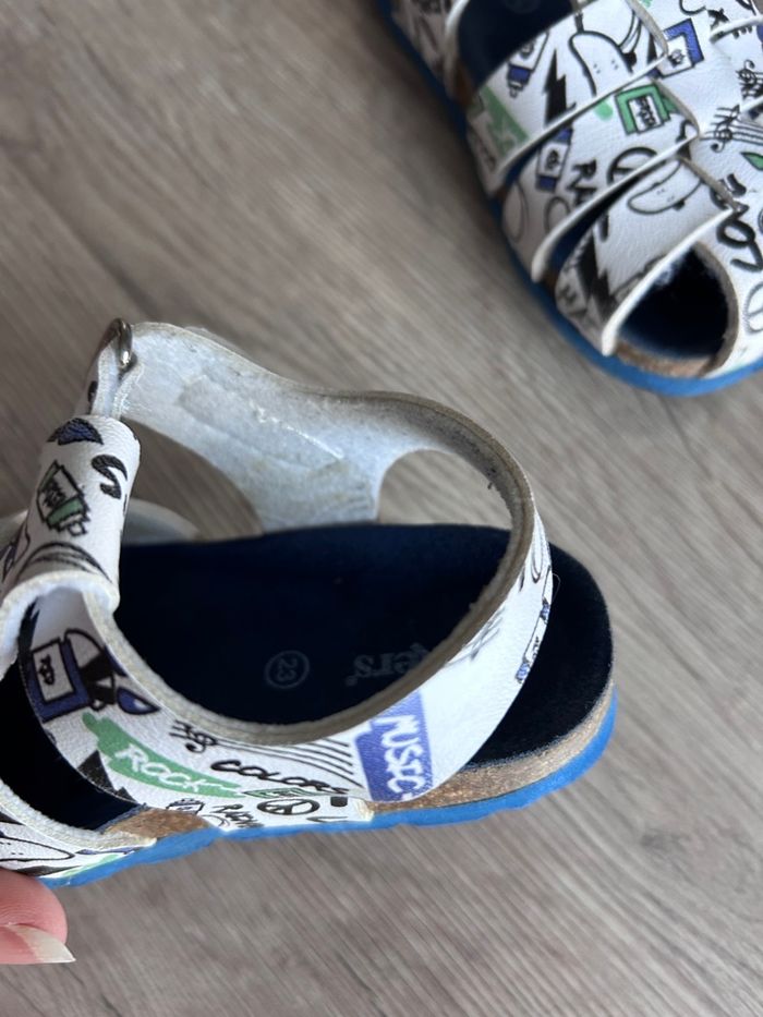 Chaussures Salomé cuir à scratch - Beige/Ciel - Pat et Ripaton - T.19 - Neuves