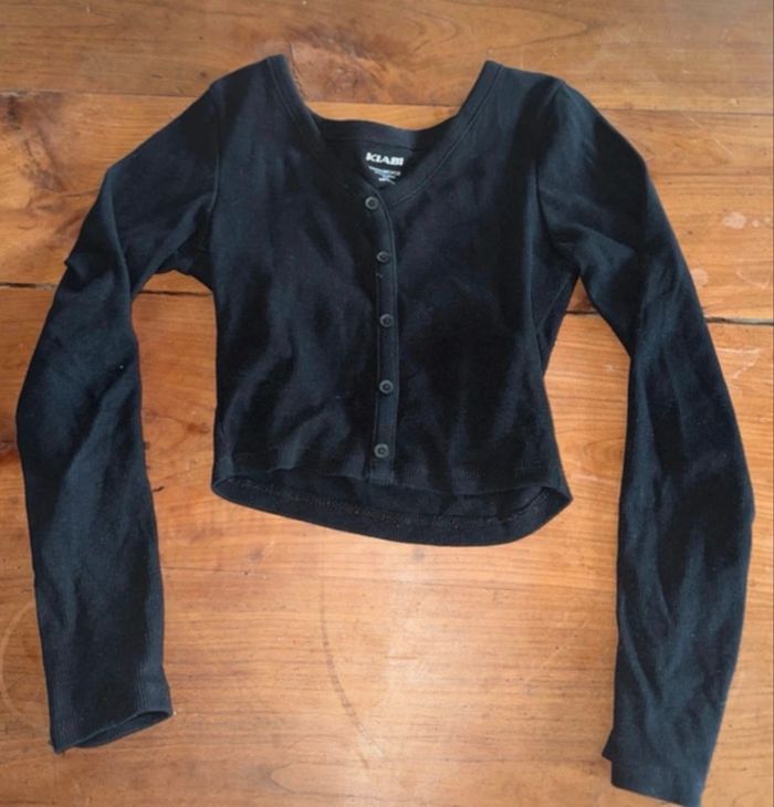 Top noir à manche longue avec bouton, zara