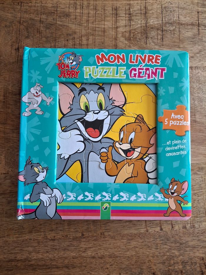 Vends livre puzzle Tom et Jerry en très bon état 5 puzzles de 12 pièces Des textes courts a lire et des jeux, devinettes...
