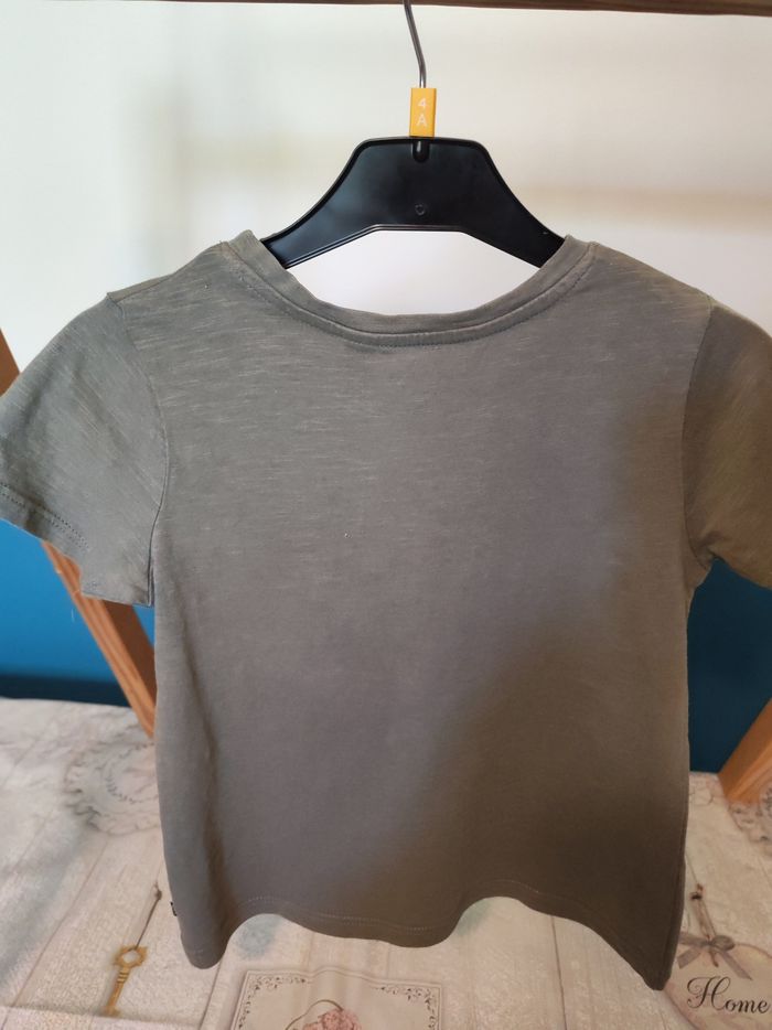 Tee shirt, de marque okaidi, en taille 4 ans, de couleurs vert kaki, en tres bon etat