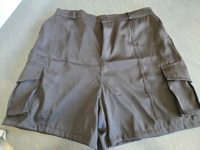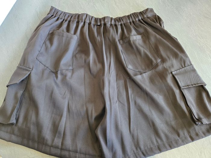 short de randonnée style cargo coloris noir taille XL 2 poches sur les côtés, 2 sur le devant et 2 à l'arrière taille élastique longueur 48 cm tissu léger état neuf - jamais porté
