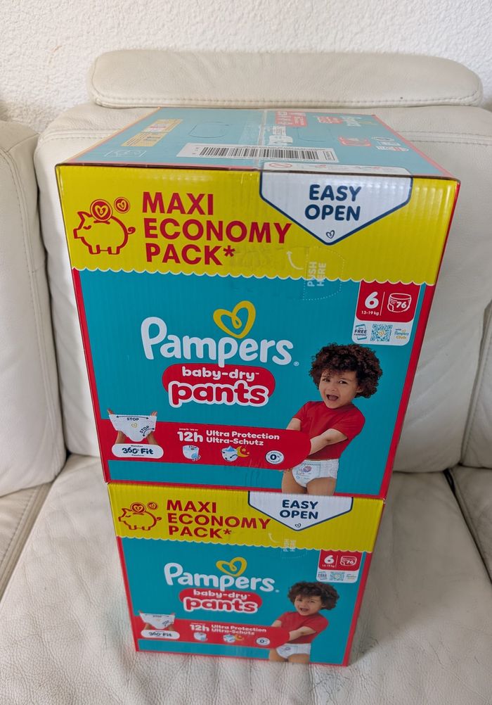 Lot de 2 cartons Pampers Baby Dry Pants taille 6 (13-19 kg) – format MAXI, 76 pants par carton, soit 152 pants au total. Produits neufs et scellés. Envoi rapide et soigné 📦 ⚠️⚠️⚠️Si vous sélectionnez Mondial Relay ne prenez pas un Locker, ça ne rentre pas. 🔔 🔔 🔔RAPPEL : Le délai pour retirer les colis a été raccourci à 5-7 jours selon les transporteurs (dimanches et jours fériés inclus). Merci de vérifier que vous serez en mesure de retirer votre colis à temps avant de commander.🙏🙏🙏 #pampers #couches #t1 #t2 #t3 #t4 #t4+ #t5 #t5+ #t6 #t7 #taille1 #taille2 #taille3 #taille4 #taille5 #taille6 #taille7 #taille8 #premium #protection #baby #pants #bébé #paquet #pack #harmonie #dry #huggies #sec #nuit #absorbant #extra #absorption