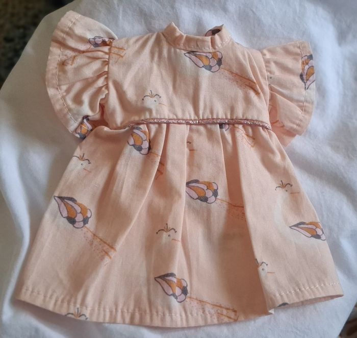 Robe pour poupon 28cm minikane, convient pour Mia Nines d'Onil ou autre poupée de Taille similaire. Couleur pêche avec motifs