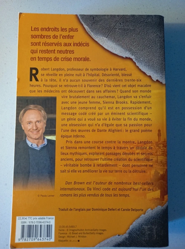 Livre neuf mais je l'ai en double C’est l’une des plus grandioses œuvres de la littérature italienne, L’Enfer de Dante, qui est le fil conducteur de cette nouvelle aventure. En Italie, plongé dans une atmosphère aussi opaque que mystérieuse, le héros de Dan Brown, Robert Langdon, professeur de symbologie à Harvard va devoir affronter un adversaire diabolique sorti des limbes de l’Enfer et déchiffrer l’énigme la plus complexe de sa carrière. Elle le fait plonger dans un monde où l’art et la science de pointe tissent un écheveau qui exige de sa part toute son érudition et son courage pour le démêler. S’inspirant du poème épique de Dante, Langdon se lance dans une course contre la montre pour trouver des réponses et découvrir en traversant les Cercles de l’Enfer ceux qui détiennent la vérité… avant que le monde ne soit irrévocablement changé. #livre #danbrown #roman #romanhistorique