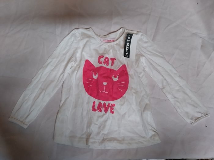 Tee-shirt blanc à manches longues Cat Love - 96cm - 36 mois - In Extenso - photo numéro 1