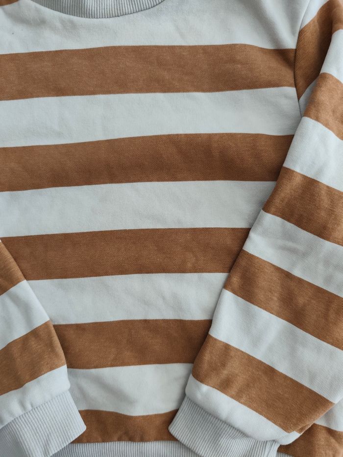 Pull à rayures marron camel et blanc Taille 5 ans Marque Kiabi En très bon état ✨