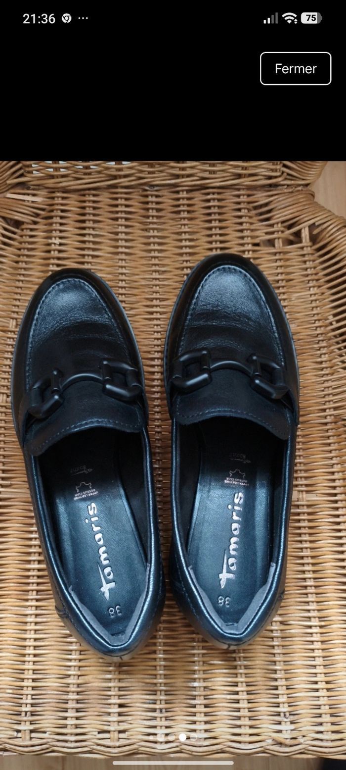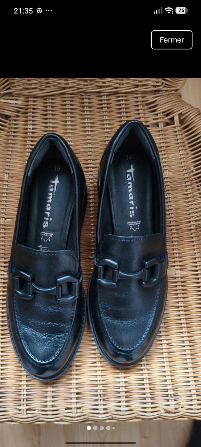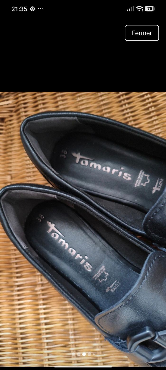 Chaussures tamaris comme neuf parfait état et nettoyer cc uir noir très confortable acheter 90 euros
