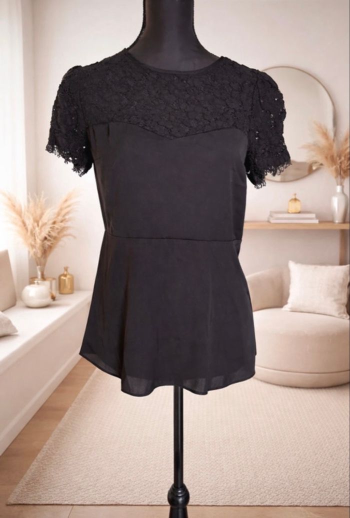 Petit haut bordeaux avec des fleurs ajourés et pompons