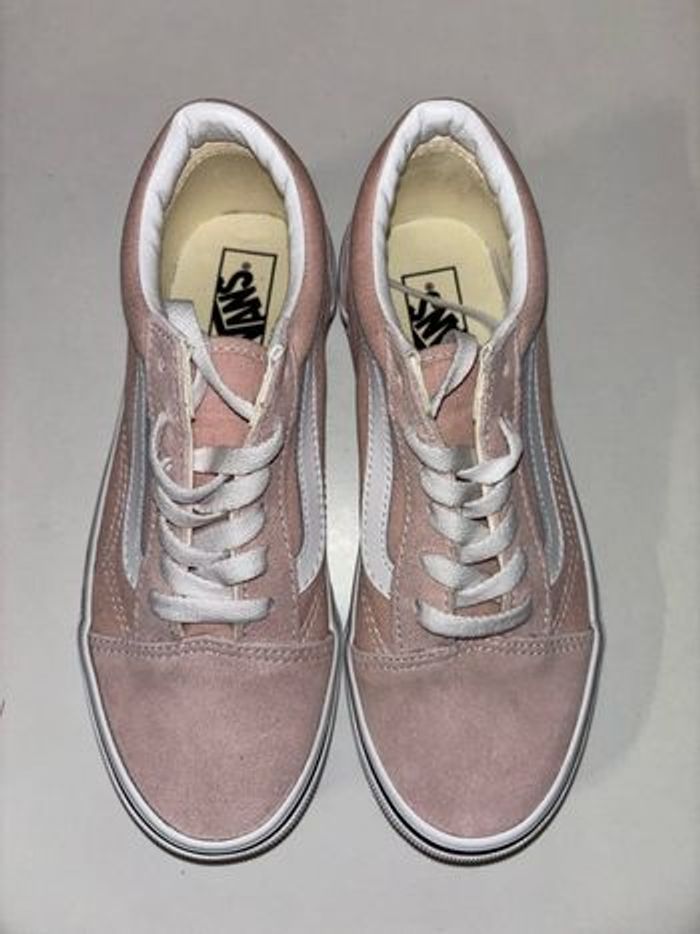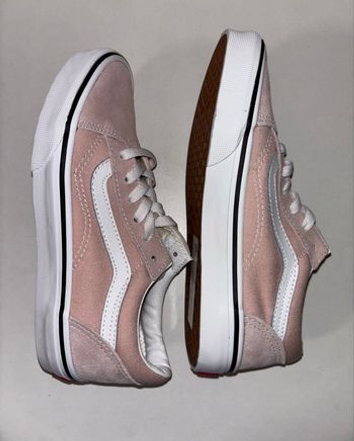 Jolie paire de baskets de marque Vans , modèle Old Skool couleur rose pâle pour enfant. Taille 34. Fermeture par lacets. Cuir/textile. NEUVES VENDUES DANS LEUR BOÎTE D’ORIGINE.