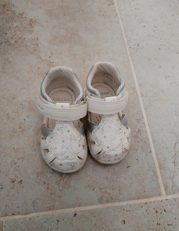 Nue pieds Geox blanches et argentées details nœuds argent En très bon état, peu portées (2 fois 1h) Prix d'achat de 40€ donc vente moitié prix