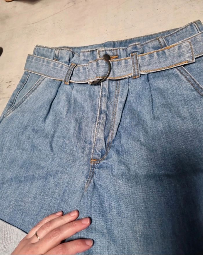 Short en jean paperbag taille XXS ou 12 ans. Avec ceinture amovible. Très bon état. Longueur 37