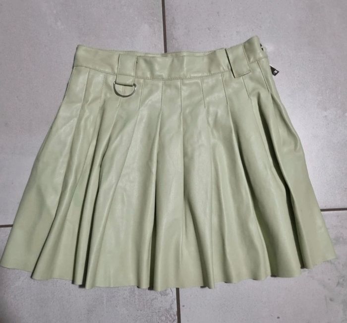 Jupe plissée simili cuir vert pistache - photo numéro 1