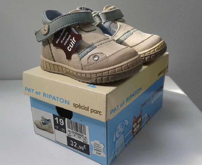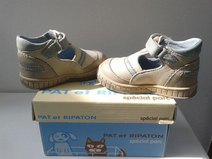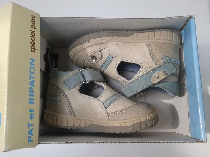 Chaussures Salomé cuir à scratch - Beige/Ciel - Pat et Ripaton - T.19 - Neuves - photo numéro 1