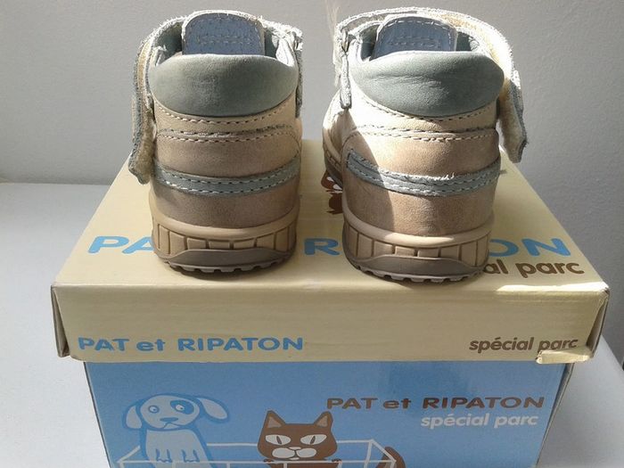 Chaussures Salomé cuir à scratch - Beige/Ciel - Pat et Ripaton - T.19 - Neuves - photo numéro 5