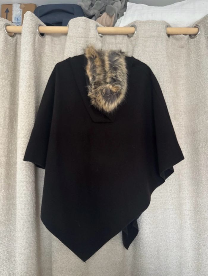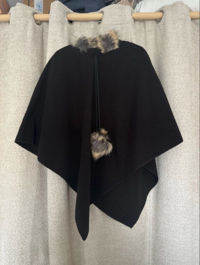 Poncho mis quelques fois en très bon état Avec capuche et fausse fourrure