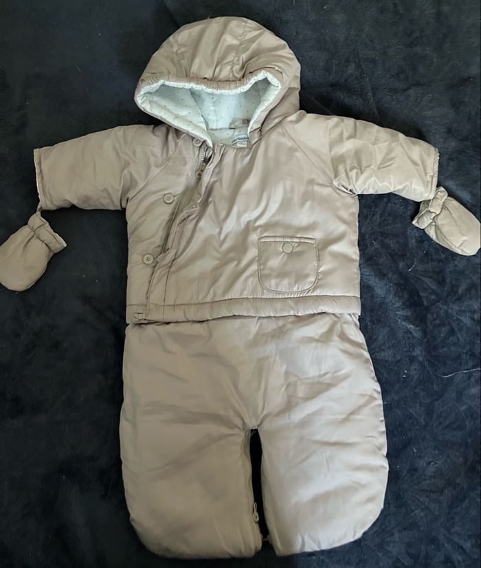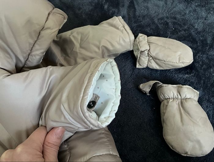 Combi-manteau bébé Pieces détachables par pressions ( moufles, bas) Peut passer d’une combinaison a un simple manteau .