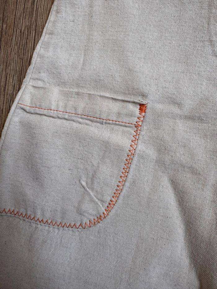 Robe Influx 24 mois en lin 19% et coton 81 % couleur beige à surpiqûres oranges 2 poches sur le devant CLRx2