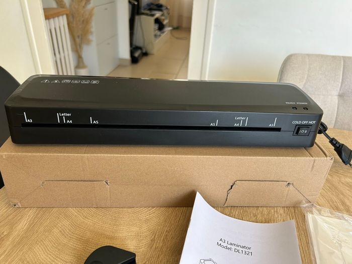 Plastifieuse A3 avec Plusieurs Feuille Pochettes 70 secondes Échauffement rapide de différentes tailles , coupe-papier intégré, Plastification Thermique et à Froid 🔖model : DL1321 🌈 Noir 🪡 Neuve, jamais utilisé, envoie dans l’emballage d’origine 💌 Envoie rapide et soigné #plastifieuse #bricolage #bureau