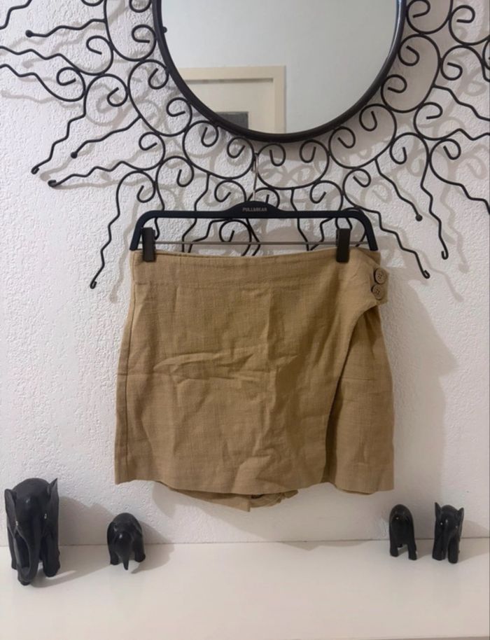 Jupe-Short Zara Beige Aspect Lin - Coupe Portefeuille Asymétrique - Taille M - Chic & Confortable - photo numéro 1