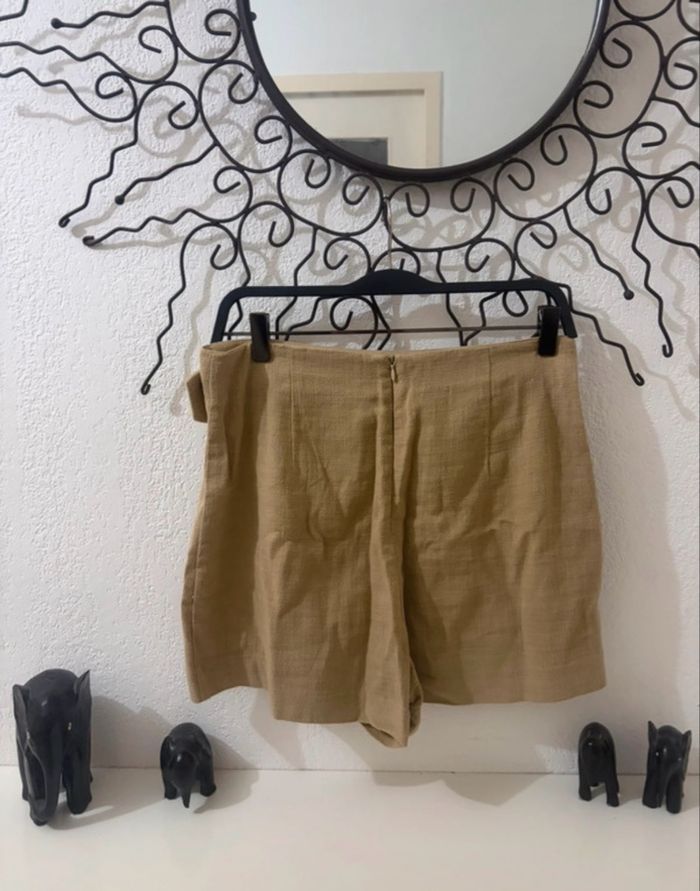 Jupe-Short Zara Beige Aspect Lin - Coupe Portefeuille Asymétrique - Taille M - Chic & Confortable - photo numéro 5