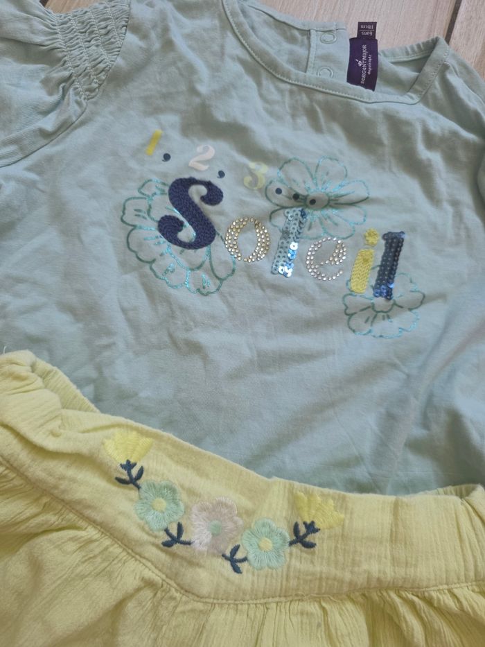 Ensemble salopette + + tee-shirt + gilet été fille 18M