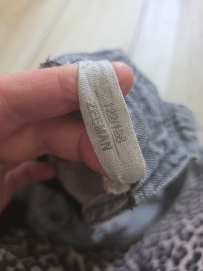 Robe grise Zeeman avec fleur bordeaux brodé. Boutonnière sur l'avant de la robe 122cm plutot petit.