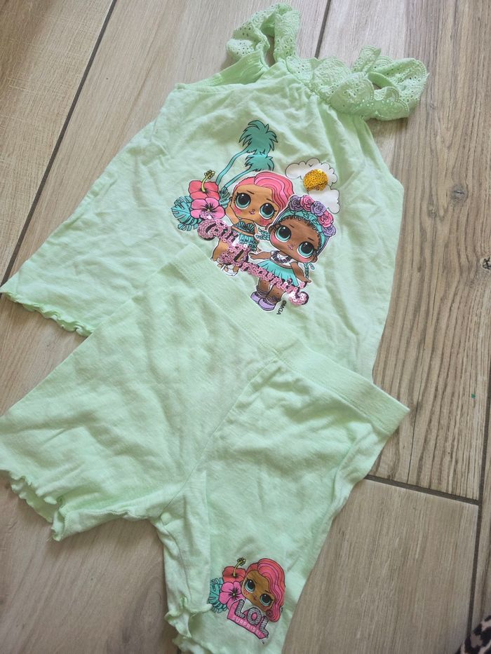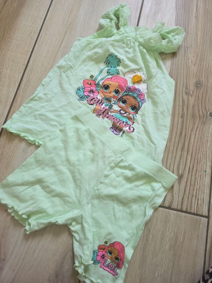 Ensemble poupee lol. Primark. 5 ans . Tbe. Tee-shirt + short cycliste. Vert pomme.