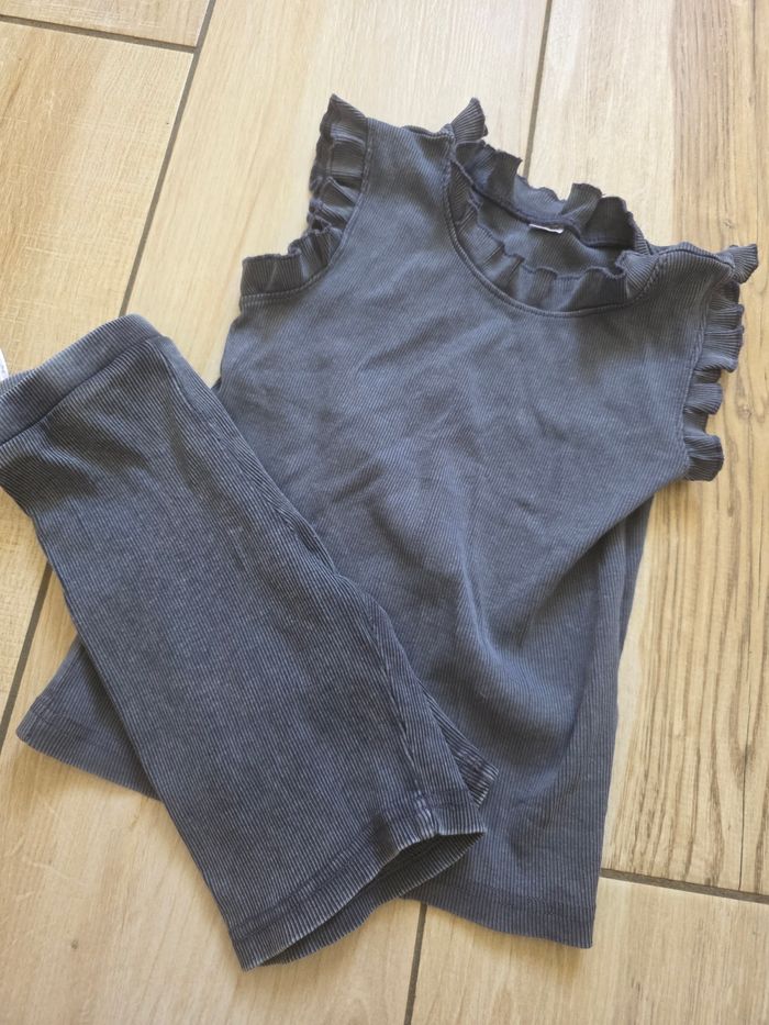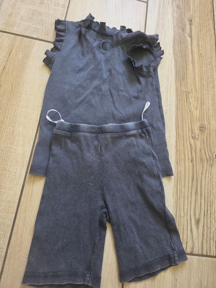 Ensemble Zeeman. Tee-shirt + short cycliste gris côtelé. Effet délavé. 6 ans