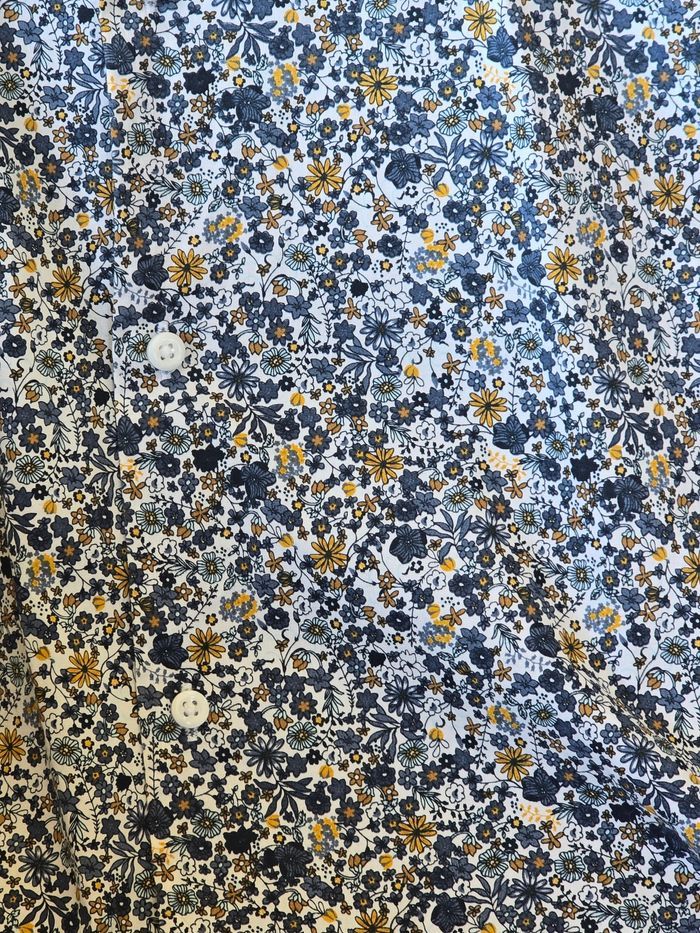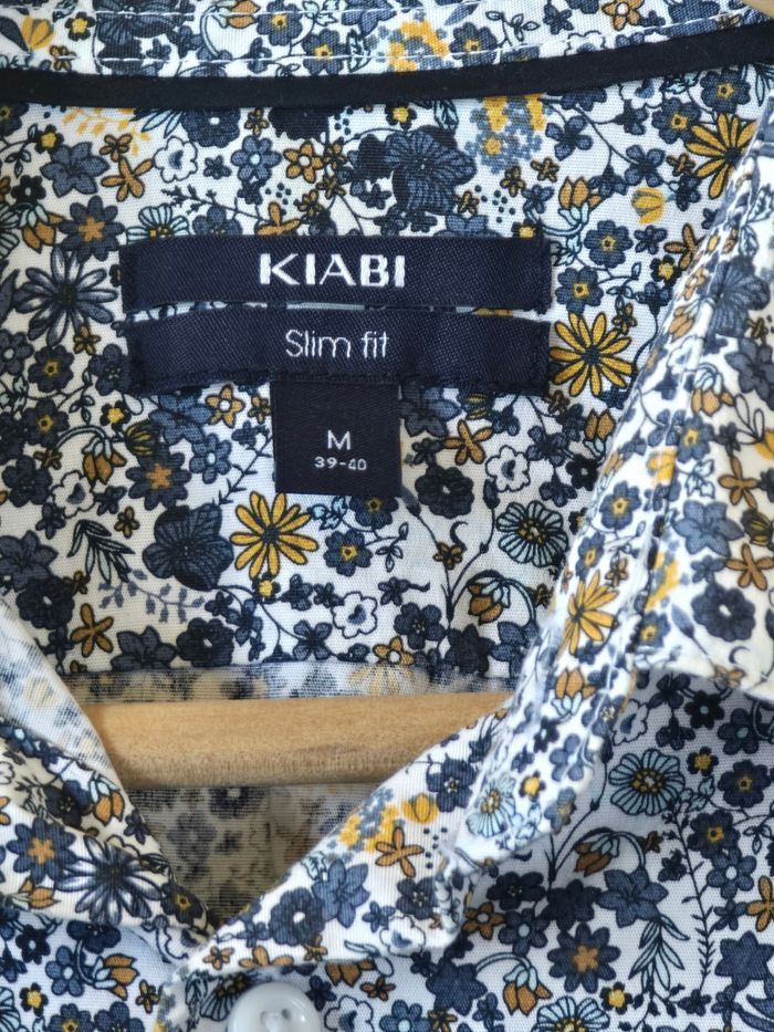 Porté 1 seule fois pour un mariage, etat nickel Magnifique chemise un peu bohème, très bel imprimé floral bleu et jaune. Impecable Taille M (slim) Kiabi