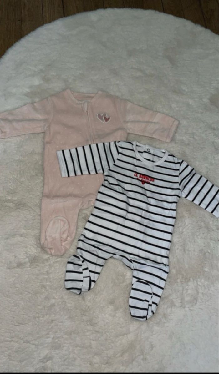 1 pyjama en velours rose avec ouverture sur le devant 1 pyjama léger avec rayures Jamais portée