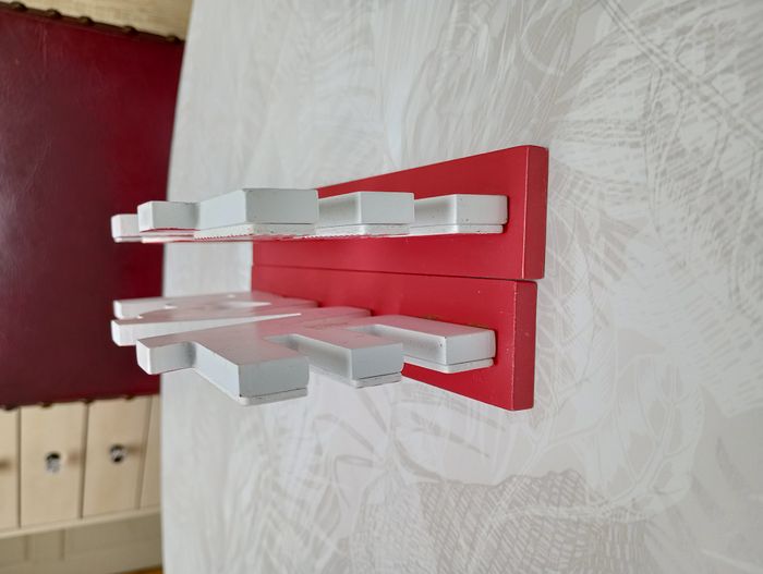 Lot de 2 décorations "Love" à poser. En bois. Légères traces de peinture à l'arrière, déjà présentes à l'achat. Longueur : 24 cm. Hauteur : 10 cm. Très bon état.