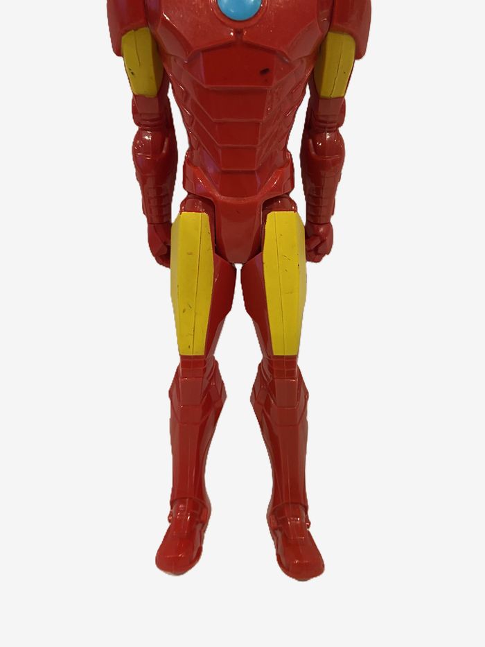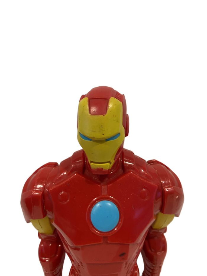 Vends figurine articulée Iron Man de l'univers Marvel, éditée par Hasbro en 2014. État : Bon état général. Quelques légères traces d'usure normales sur la peinture (visibles sur les photos), mais la structure est intacte et les articulations fonctionnent parfaitement. Détails : * Marquages officiels sous le pied : Hasbro SA, 2014 Marvel, Made in China. Design classique rouge et or avec réacteur Arc bleu. Taille : Environ 30 cm (format Titan Hero Series). Articulations : Tête, bras et jambes mobiles.