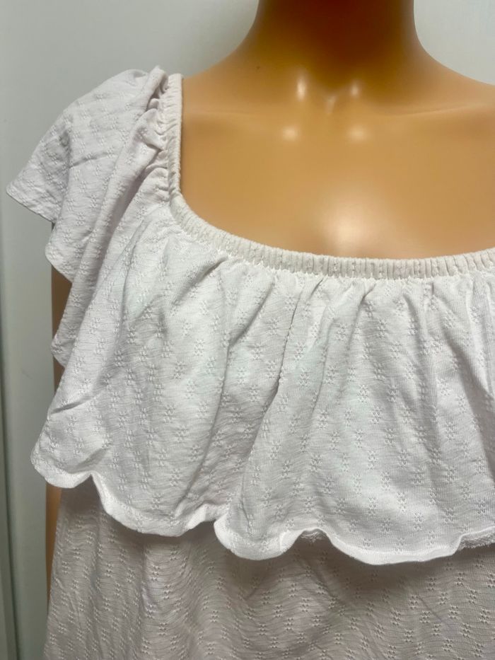 Blouse blanche avec un grand volant devant, Marque Kiabi Taille 4XL 58/60 TBE