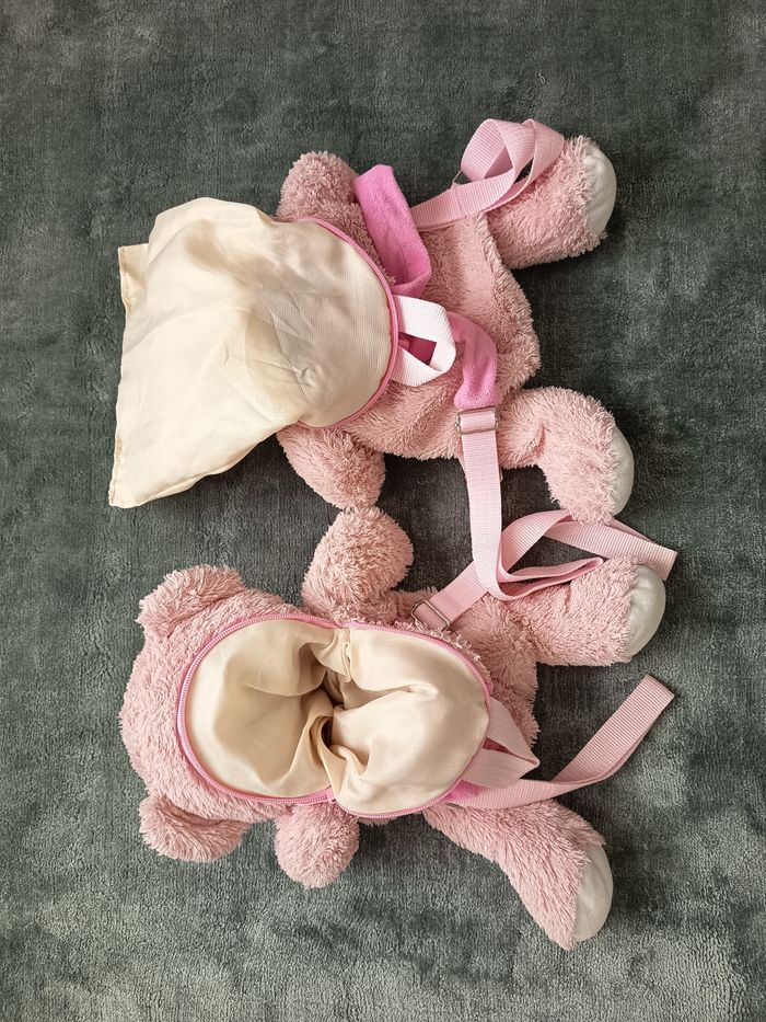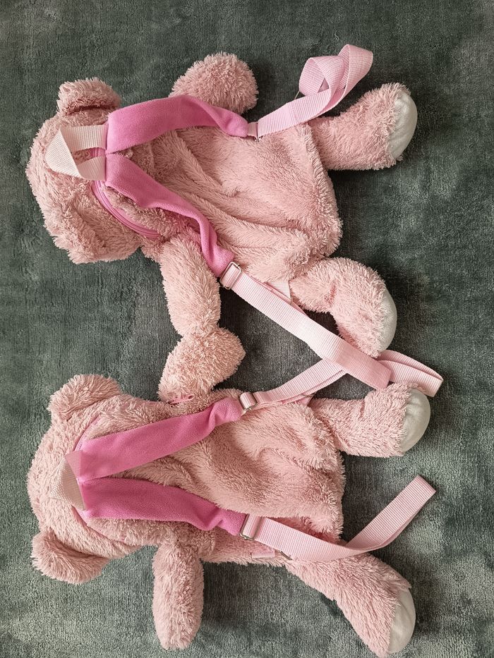 Lot sac a dos peluche ours rose jumelle
