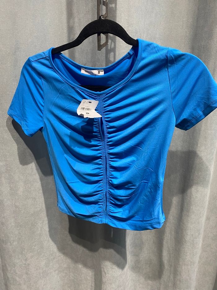 Top bleu à manches courtes Terranova, taille S, avec un joli effet froncé sur le devant, neuf avec étiquette. ⭐️ État : 10/10 (neuf) 🎨 Couleur : Bleu vif 📏 Taille : S 🚚 Expédition rapide et soignée