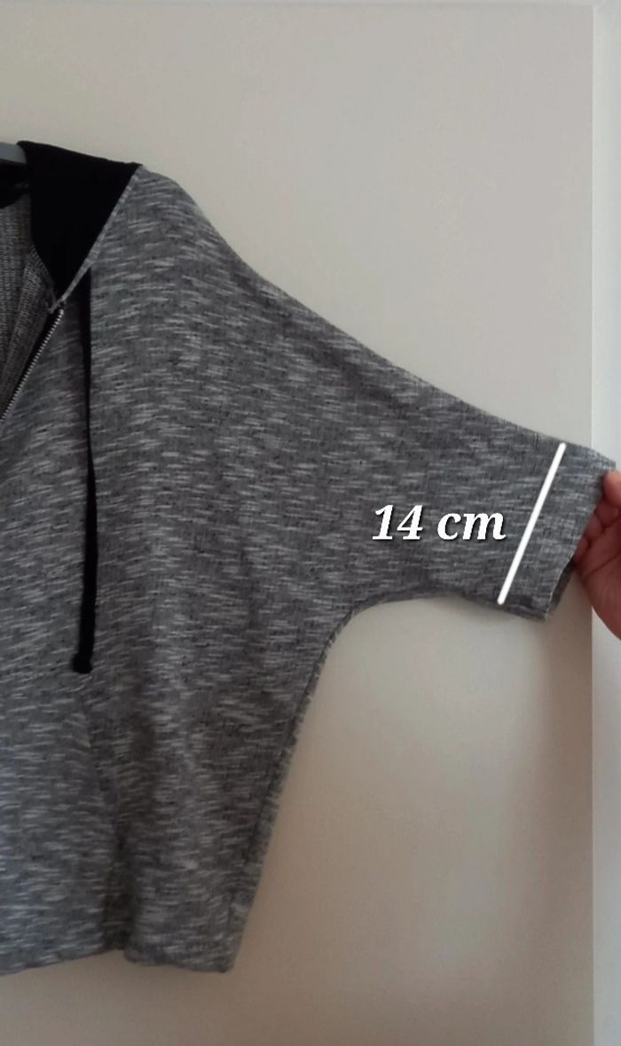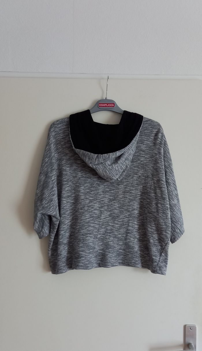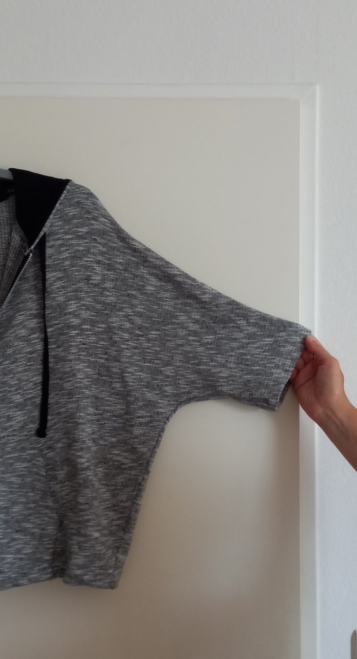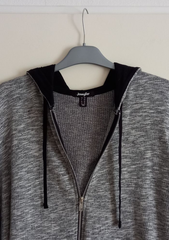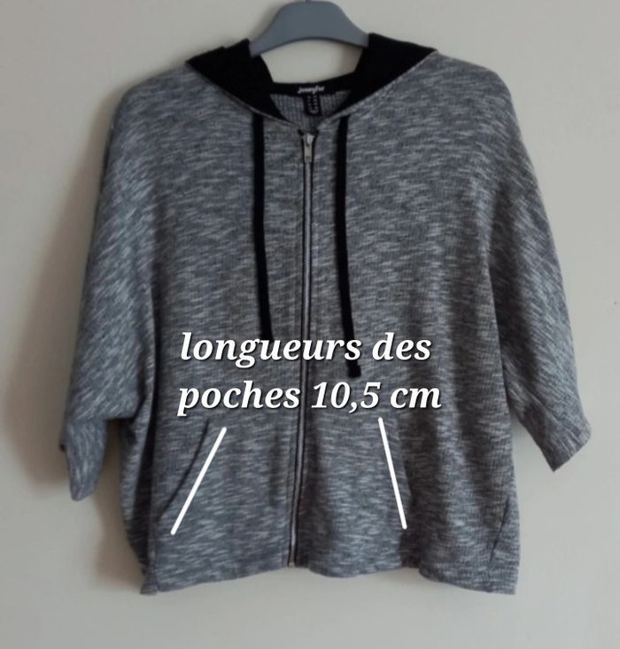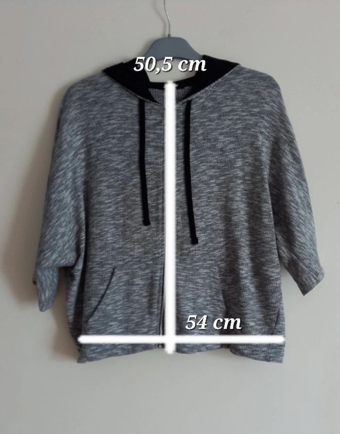 Sweat zippé à capuche, manches courtes de couleur gris. Fermeture éclair en métal. Marque Jennyfer. TAILLE XS / 34. Dimensions, voir photos.
