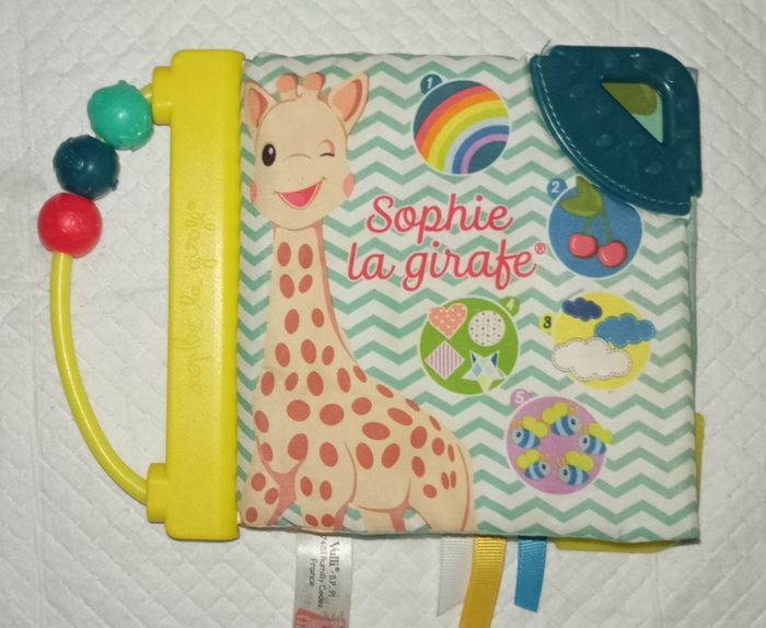 Livre d'éveil Sophie la girafe Voir photos pour état (1 ou 2 petites taches faite par bébé)