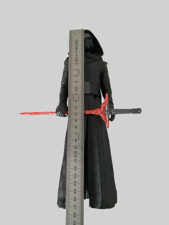 Vends figurine articulée de Kylo Ren, l’emblématique leader du Premier Ordre dans la saga Star Wars. État : Très bon état général. La figurine a été soigneusement conservée. Détails : Modèle avec sa bure texturée noire, sa capuche et son célèbre sabre laser rouge à garde transversale. Dimensions : Environ 30 cm de hauteur (format 12 pouces). Authenticité : Produit officiel Hasbro (marquages LFL sous le pied visibles en photo). Origine : Collection Star Wars : Le Réveil de la Force.