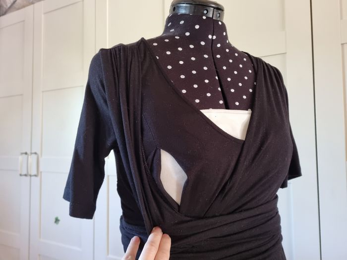 Robe de grossesse et maternite de marque SERAPHINE. 100% jersey coton. T 38. Fermeture cache cœur avec lien a nouer dos ou devant. Très bon état