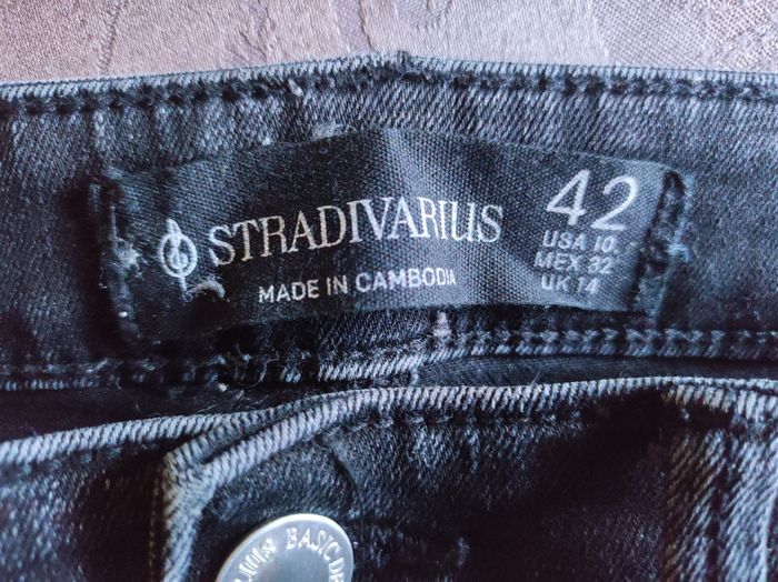 Jean noir délavé droit jambes larges taille 42 Stradivarius - photo numéro 3