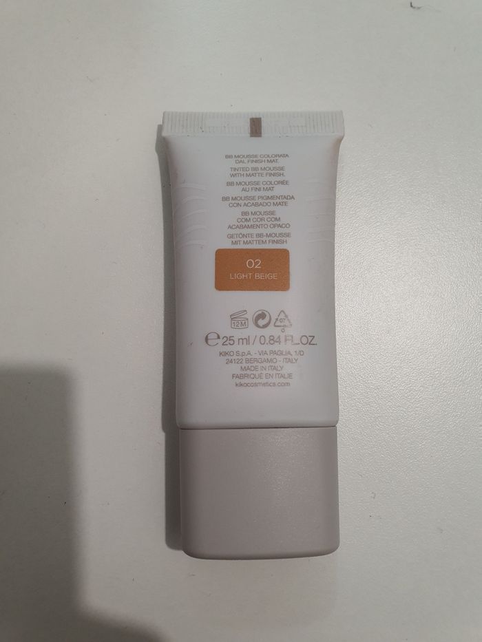 BB mousse vegan konscious de la marque Kiko milano Teinte 02 Light beige Oppercule enlevée mais ne correspond pas à ma couleur de peau