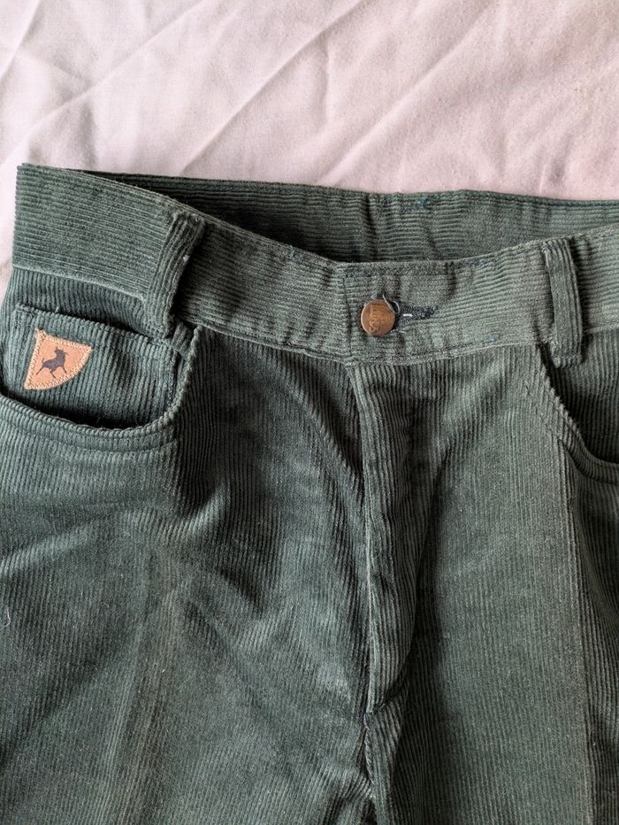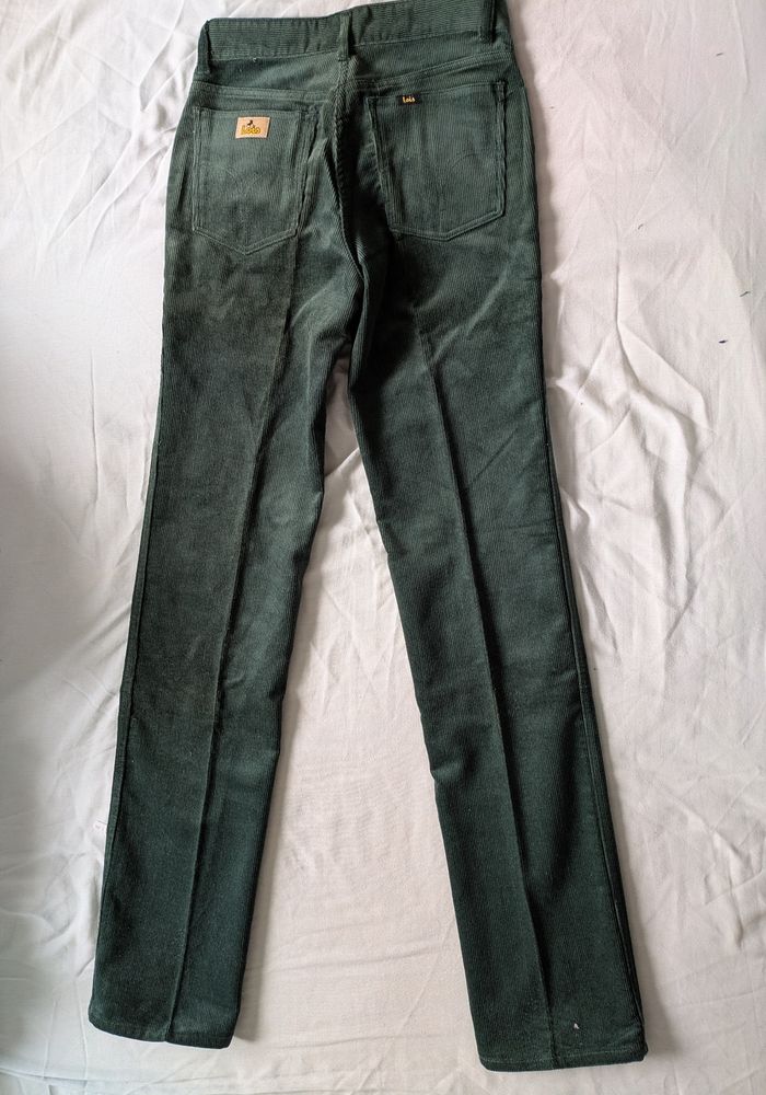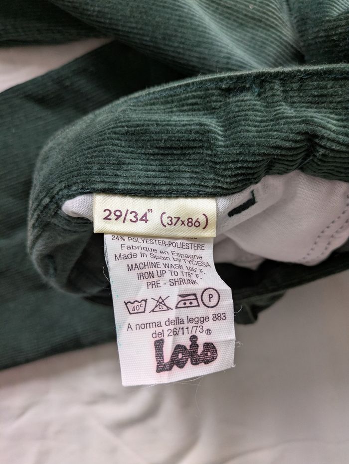 Pantalon velours côtelé vintage couleur vert foncé, neuf sans étiquette, marque lois, fabriqué en Espagne Taille 29 x 34, attention taille petit, voir les dimensions ci dessous: Largeur taille 34 cm Longueur jambe intérieure 86 cm Longueur jambe extérieure 112 cm
