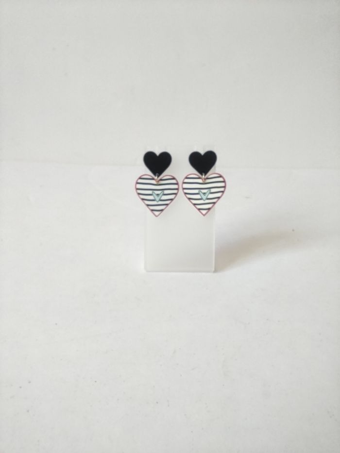 Boucles d'oreilles Green Birdy Boucles d'oreilles Double ❤️ coeurs . 1 petit cœur noir . 1 coeur à rayures Résine : très légères Longueur : 4 cm Jamais portées, les boucles sont neuves