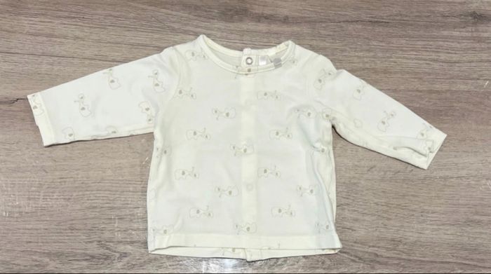 Vends ensemble bébé garçon (haut + salopette) Marque : orchestra Taille : 1mois (54cm) Couleur : blanc, marron En très bon état,voir photo